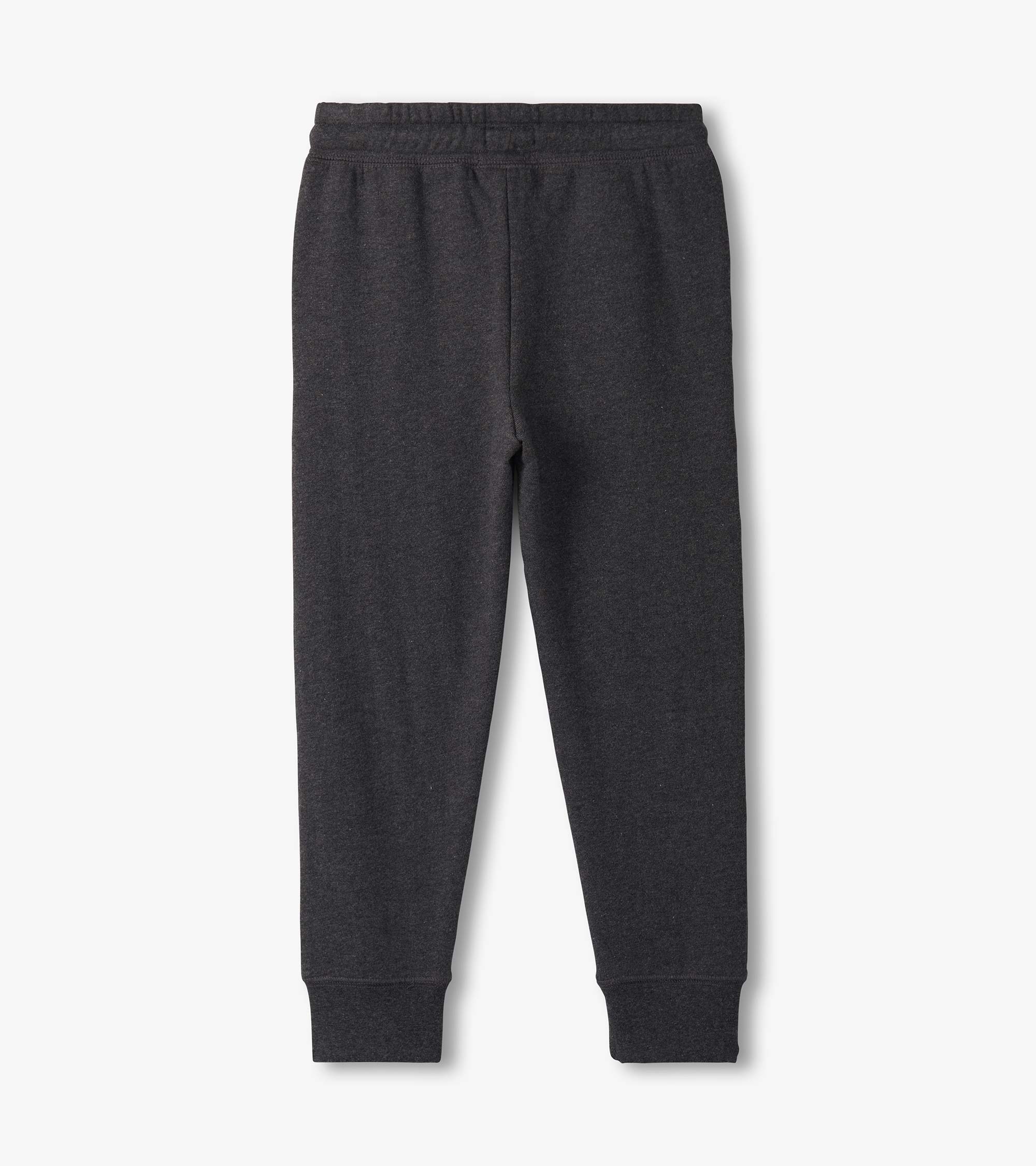 Keep him comfortable in the Boys Charcoal Melange Joggers, crafted from 100% cotton washed loop French terry for soft, breathable wear. These slim-fit joggers feature a deep charcoal grey hue and ribbed cuffs for a sporty, tapered look. The elastic waistband includes a functional white drawcord accented with small red details, adding a playful touch to the design. With two front slit pockets for everyday essentials, these joggers are perfect for both active days and lounging.